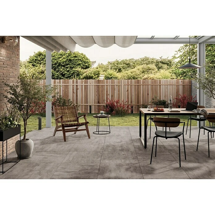 Die unglasierte Feinsteinzeugfliese Rover ist der ideale Allrounder für Terrasse, Balkon und Garten. Die Betonoptik bringt Natürlichkeit in Ihren Outdoor-Bereich. Die rutschhemmenden Eigenschaften R11 machen sie zum perfekten Allrounder. Durch die rektifizierten Kanten ist die Fliese besonders maßgenau und mit einer schmalen Fuge verlegbar. Vielfältige Verlegearten, wie loses Verlegen auf Split, Gras, Kies oder auf Stelzlager sowie klassisches Verkleben lassen viele Gestaltungsspielräume.
