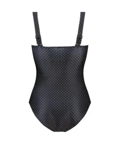 Dieser Badeanzug ist mit einem hübschen Punktmuster versehen. Die breiten und verstellbaren Träger sorgen für einen hohen Tragekomfort. Ein echtes Must-have für Deine Bademodenkollektion!