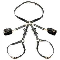 Hergestellt aus strapazierfähigem PU-Kunstleder, ist das Bondage-Harness vegan und kann nach jedem Gebrauch einfach gereinigt werden.