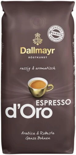Crema d`Oro Intensa von Dallmayr ist eine Kaffeespezialität in ganzen Bohnen mit einer feinen Crema. Hergestellt aus 100 % Arabica-Bohnen, ist der würzig-intensive Kaffee ideal geeignet für Kaffeevollautomaten. Sie erhalten eine Packung mit 1.000 g Inhalt.