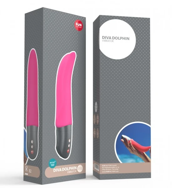 Freundlich, glatt und anschmiegsam taucht Diva Dolphin ein in die intimsten Tiefen und verwöhnt auf zĂ€rtliche Weise. Die Delphindame sieht nicht nur sympathisch aus, ihre ĂŒberaus sinnliche Form ist auch sehr funktionell: Der Kopf ist leicht gebogen, wodurch sie spielend den G-Punkt erreicht und mit ihrem schmalen StubsnĂ€schen liebkost sie besonders gerne die Klitoris. Insgesamt ist der Vibrator 19 Zentimeter lang, mit einem Durchmesser von 1,5 bis 3,6 Zentimetern. Der Fun Factory Diva Dolphin ist der langersehnte Nachfolger des nicht mehr erhĂ€ltlichen Dolly Dolphin. Aber die Fun Factory hat den Klassiker gehörig aufgepeppt und ihm den neuen BATTERY+ Motor spendiert. Das Ergebnis: Diva Dolphin ist der kraftvollste batteriebetriebener Vibrator auf dem Markt, der selbst zum Ende der Batterielaufzeit eine gleichbleibend-starke Vibration bietet! Und mit dem Upgrade des separat erhĂ€ltlichen HYBRID KITs, können sogar wiederaufladbare Batterien eingelegt und im Inneren des Toys aufgeladen werden – wie praktisch ist das denn bitte? Dank dieses extra starken aber dennoch leisen Motors sorgt Diva Dolphin immer wieder fĂŒr aufregende HöhenflĂŒge und neue Abenteuer, sowohl alleine als auch zu zweit. Und mit 4 starken, tieffrequenten Geschwindigkeiten und 6 Vibrationsrhythmen wird es garantiert nie langweilig. Und da Diva Dolphin auch 100 % wasserdicht ist, bietet sich auch ein Ausflug in die Dusche oder Badewanne an – alles andere wĂ€re fĂŒr eine Delphindame ja auch ungewöhnlich. Die Vibrationsprogramme lassen sich ganz easy am ĂŒber beleuchtete Tipptasten regulieren. Dank der “Press Fun to Playâ-Technik lĂ€sst sie sich ganz intuitiv bedienen und durch die Sofortstopp-Taste wird sie schlagartig ganz “zahmâ. Unterwegs ist die Tastensperre ein sehr praktisches Feature. Und – last but not least – ist das Material einfach prima, da der Fun Factory Diva Dolphin aus 100% medizinischem Silikon besteht und sich durch die samtig-weiche OberflĂ€che sehr soft und angenehm auf der Haut anfĂŒhlt. Das Material ist optimal körpervertrĂ€glich, geruchsfrei und einfach zu reinigen. Unser Fazit: Der Diva Dolphin ist ein ĂŒberzeugendes Lovetoy der Extraklasse und sowohl fĂŒr AnfĂ€ngerinnen als auch fĂŒr Fortgeschrittene ein ĂŒberaus “befriedigendes” Spielzeug.