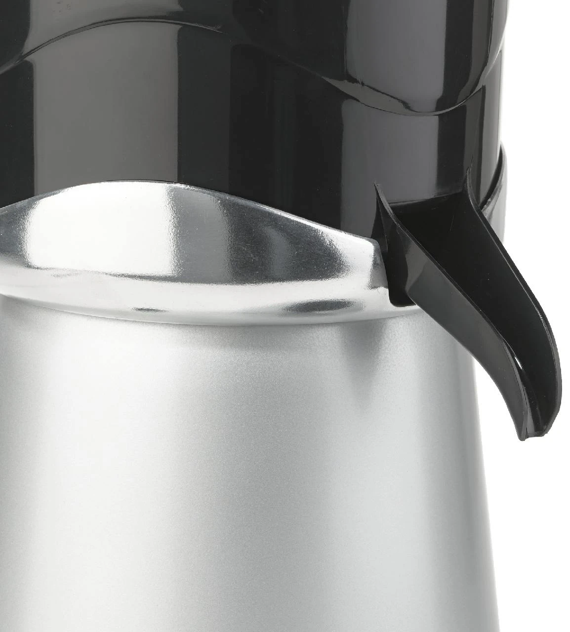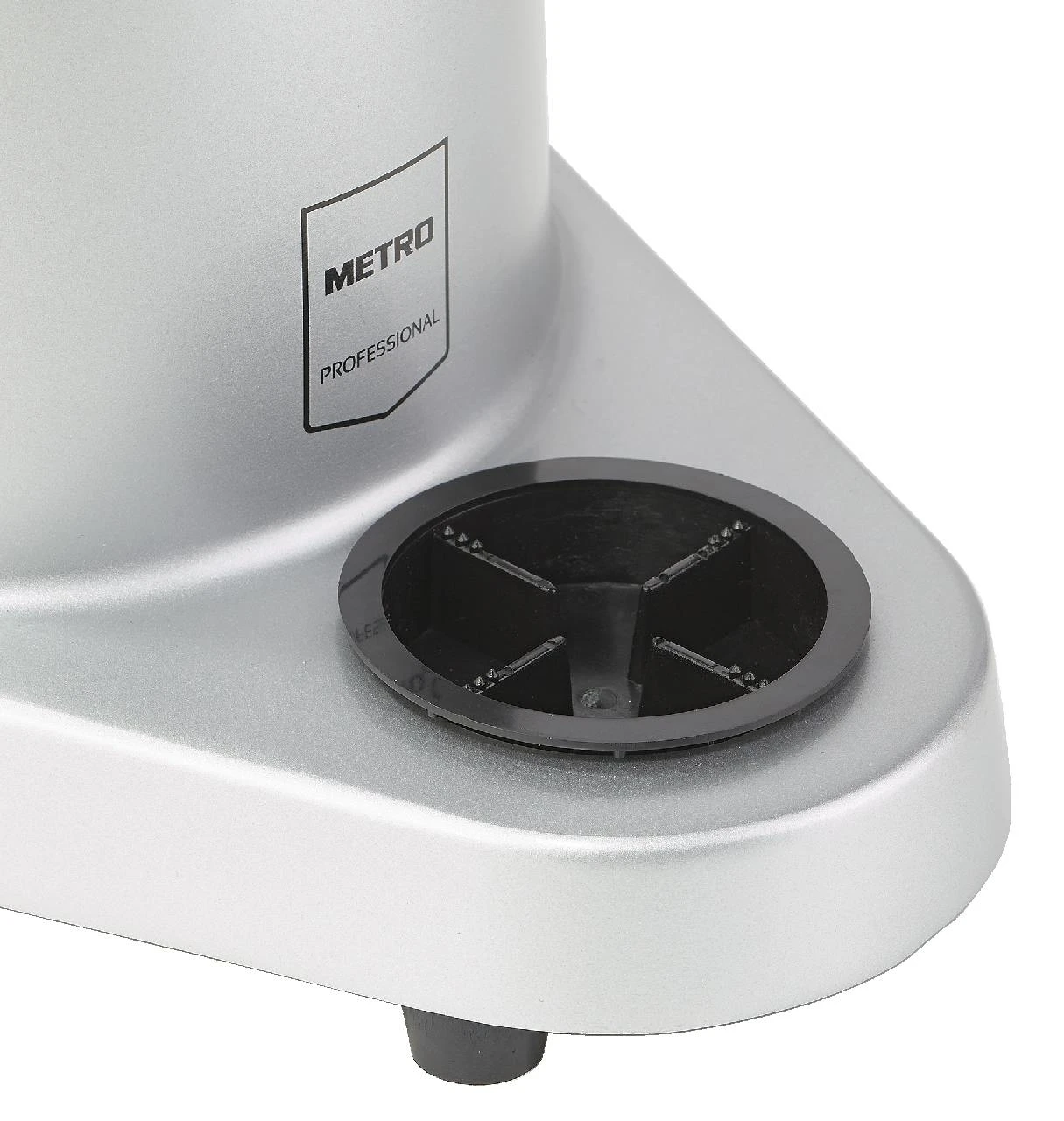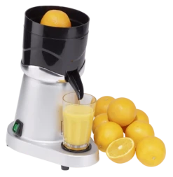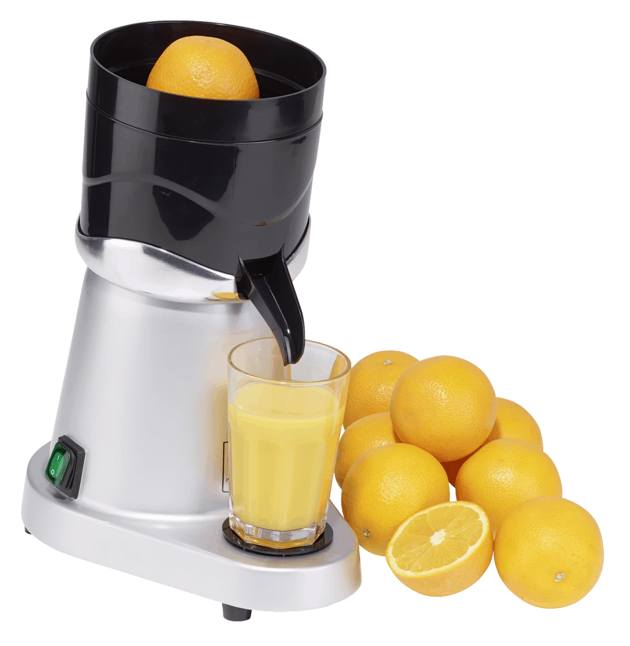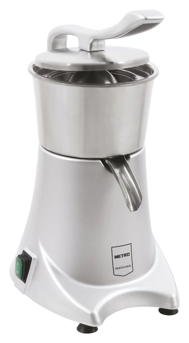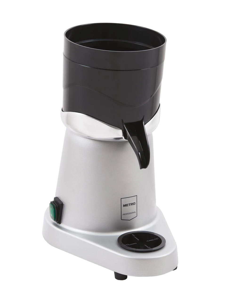 Der METRO Professional Entsafter in Silber und Schwarz hat eine Leistung von 180 W, einen Ăśberhitzungsschutz, einen Ein/Aus-Schalter mit Licht und 3 unterschiedlich groĂźe Entsafterkegel.
