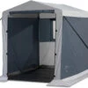 Das bringt Bequemlichkeit auf das Spielfeld. Dieses einzelne Toilettenzelt bietet die Möglichkeit, diskret eine chemische Toilette zu beherbergen, mit Platz zum Duschen mit einer optionalen Outwell-Duschblase, die in der Deckenhängematte hängt. Ein Vinyldachfenster fängt die Sonnenstrahlen ein, um das Wasser zu erwärmen. Zu den Funktionen gehören geschützte Belüftungseinsätze, Handtuchhalter, Taschen und Bodenplane mit Abflussnetz.