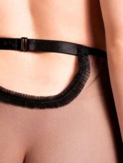 Diese Panty mit hoher Taille besteht aus einem durchsichtigen Nylongewebe mit leichtem Stretchanteil. Um das An- und Ausziehen zu erleichtern, ist an der Rückseite der Taille ein elastischer Streifen angebracht, der sich leicht aushaken lässt. Die Rüschen am unteren Rand der hinteren Ausschnittpartie sind aufwendig von Hand plissiert. Hinweis: Dies ist ein strukturierterer Stoff der normalerweise nicht für Unterhosen verwendet wird und ist daher nicht so weich.