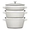 Das hochwertige, emaillierte Gusseisen verbindet die hervorragenden Kocheigenschaften und die Langlebigkeit von Gusseisen mit der Benutzerfreundlichkeit und der zeitlosen Eleganz von emailliertem Kochgeschirr. Die einzelnen Bestandteile lassen sich stapeln, so dass das Set in jede KĂĽche passt.