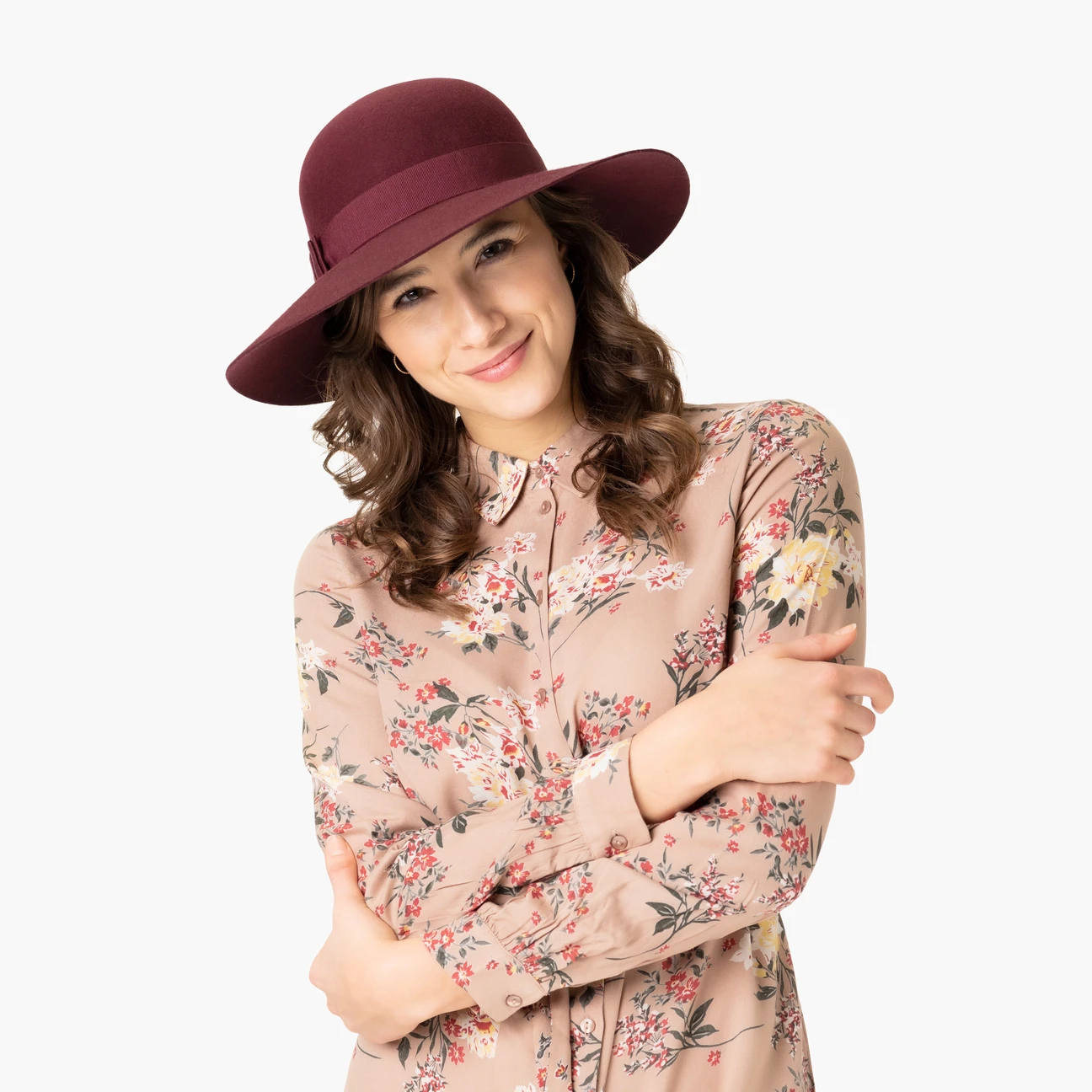 In unifarbenem Design kommt die harmonisch runde Krone des Filzhuts besonders gut zur Geltung, darunter breitet sich ausladend die geschwungene Krempe aus – perfekt fĂĽr einen verfĂĽhrerischen Augenaufschlag.