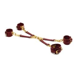 Der edle UPKO Hogtie-Connector besticht nicht nur durch die hervorragende Verarbeitung, sondern auch durch die exklusiven goldfarbenen Metallteile. Vor allem im Zusammenspiel mit den passenden Hand- und Fußfesseln aus diesem Set von UPKO ist der Hogtie-Connector ein Statement für guten Geschmack. Die acht goldfarbenen Karabiner überzeugen durch solide Qualität und vielseitige Einsatzmöglichkeiten. Die Ränder der Lederriemen sind für eine langfristige Verwendbarkeit abgerundet und präzise vernietet.