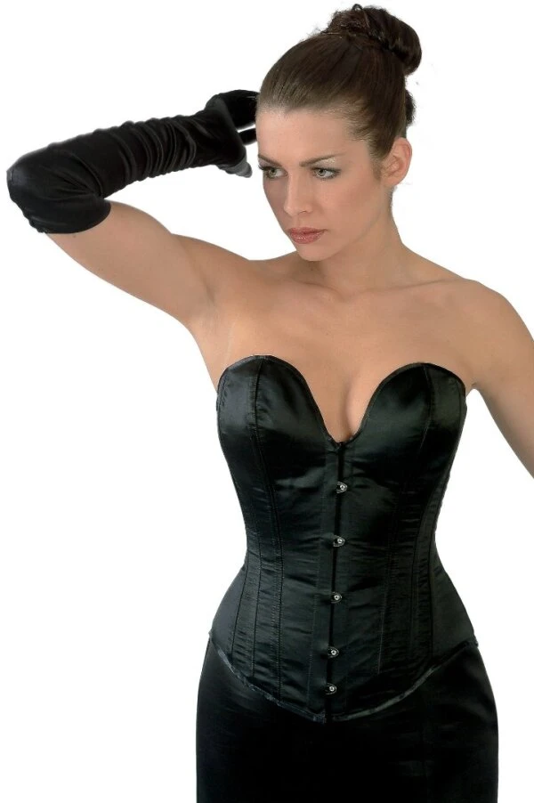 Echtes Satin Vollbrustkorsett in schwarz der Edelmarke Revanche de la