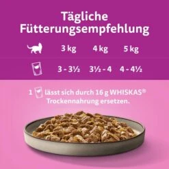mit Huhn: Fleisch und tierische Nebenerzeugnisse (21%, 100% natürlich*; u.a. Huhn 4% im Häppchen**), pflanzliche Eiweissextrakte, Mineralstoffe (0.7%), Zucker, pflanzliche Nebenerzeugnisse. *Natürliche Zutaten. **Häppchen machen 33% des Produkts aus.